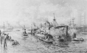The Harbour Of Dordrecht, With The Grote Kerk Beyond