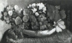 Blumenstilleben Mit Dahlien Und Nelken In Zwei Glasvasen Auf Einem Tisch