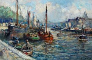 Evert Moll was a Dutch painter born on February 1, 1878, in Voorburg, Netherlands. He is known for his maritime scenes, river views, and cityscapes that capture the essence of Dutch life and the country's relationship with water. Moll developed an interest in art at an early age and pursued his passion by studying at the Academy of Fine Arts in Rotterdam, where he honed his skills in drawing and painting.