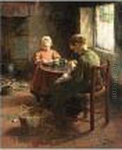 Dutch Interior With Mother And Children