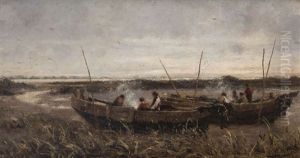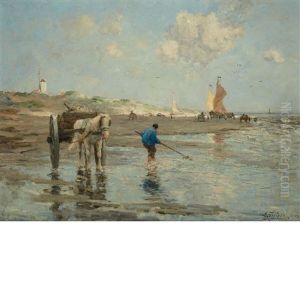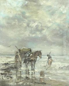 Beach Scene With Fishing Boat, Horse-drawn Cart And Figures