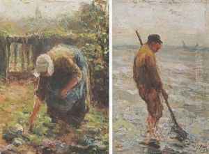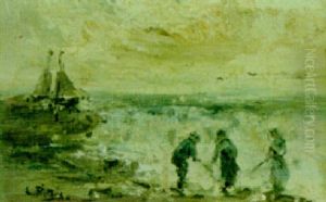 A Shellfisher On The Beach, A Bomschuit In The Distance