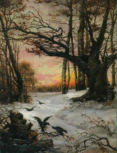 Krahen Im Winterlichen Abendlicht