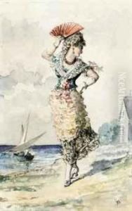 A Family On A Terrace; And A Lady In A Regional Costume, Holding A Fan