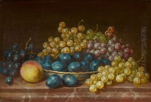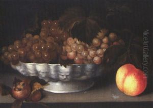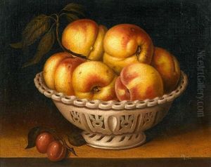 A Crystal Fruit Stand With Peaches, Quinces, And Jasmine Flowers