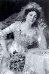 Ritratto Di Signora Con Vestito Bianco E Cappello Nero
