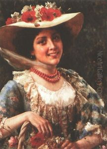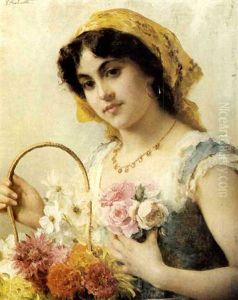 A Peasant Girl With A Basket Of Flowers