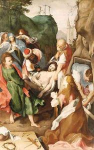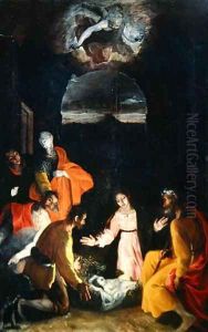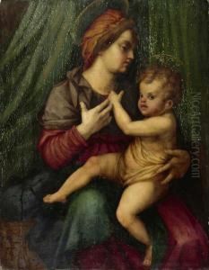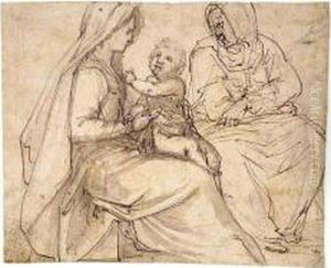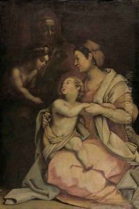 The Madonna And Child Beside A Crib In An Interior, Saint Josephseen Reading Through A Doorway To The Right