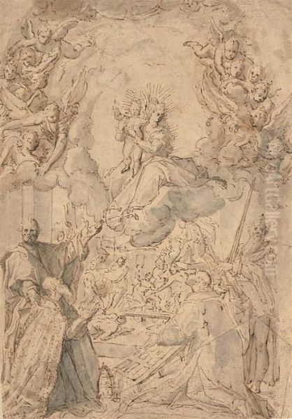Madonna And Child Appearing To Saints Peter