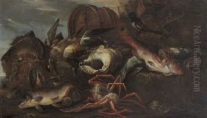 Natura Morta Di Pesci Con Funghi, Conchiglie E Un Piatto Di Ceramica