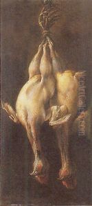 Nature Morte Med Ophaengt Fuglevildt Og Hare, I Baggrunden Det Abne Land