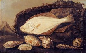 Natura Morta Di Pesci Con Funghi, Conchiglie E Un Piatto Di Ceramica