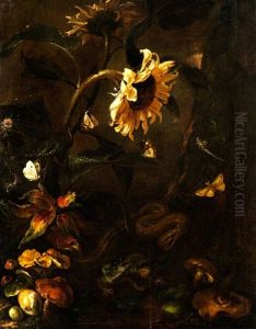 A Still Life Of Fruit, Mushrooms And Flowers In A Vase