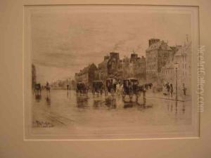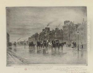 Une Matinee D'hiver Au Quai De L'hotel Dieu Oil Painting by Felix-Hilaire Buhot
