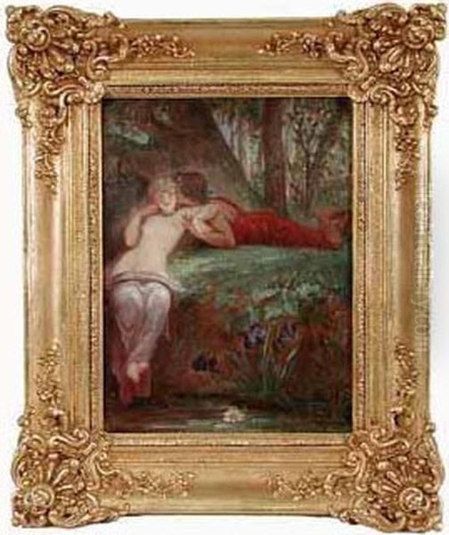 "paysage A La Riviere Animee D'une Scene Mythologique".