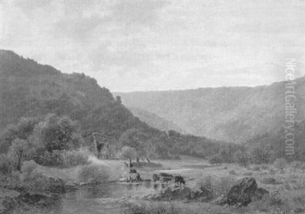 Kuhhirten Am Bach Eines Romanischen Tales