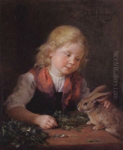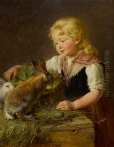 Kleines Madchen, Das Einen Hasen Futtert