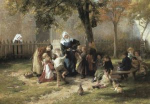 Stubeninterieur - Ein Kleines Madchen Liest Ihrem Grosvater Aus Einem Buch Vor