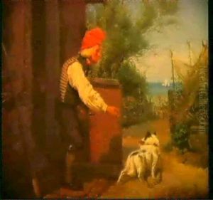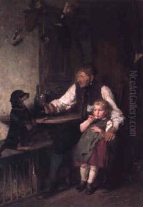 Die Hundedressur. Grosvater Mit Enkelin Und Dackel In Der Stube