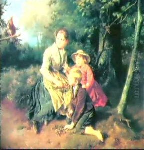 Mother And Her Children In Interior
