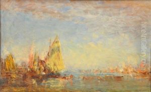 Gondolas And Shipping On The Lagoon Before The Doge's Palace,venice