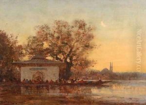 Ruderboot Am Flussufer Bei Konstantinopel.