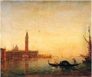 Venezianische Ansicht: Blick Auf Die Einfahrt Zum Canal Grande, Santa Maria Della Salute, Dogenpalast Und Campanile