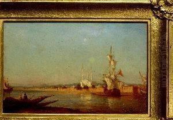 Felix Ziem . View Of Constantinople Harbor With Blue Mosque