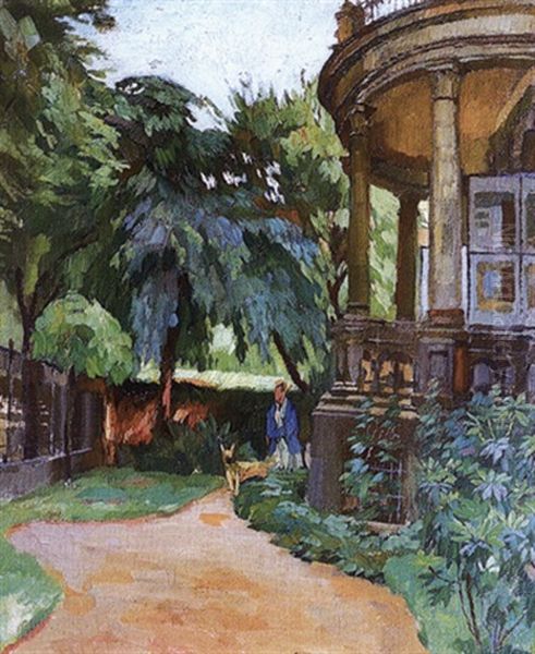 Dresden: Villa Und Park In Der Tiergartenstrase Mit Dame Und Dogge