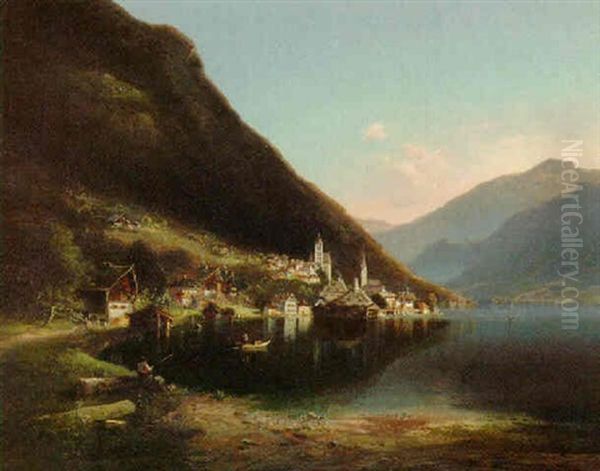 Hallstatt Oil Painting by Ferdinand Feldhuetter