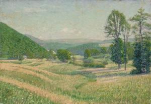 Sommerliche Landschaft Mit Bluhenden Feldern