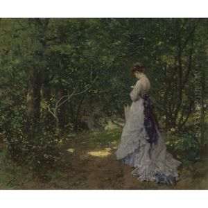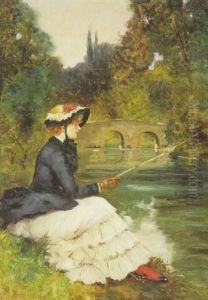 Portrait Of A Woman In Pink Gown Resting Near A River Bank
