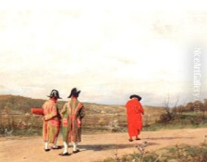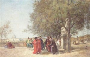 Figures On A Terrace Overlooking Rome With St. Peter's In The Distance