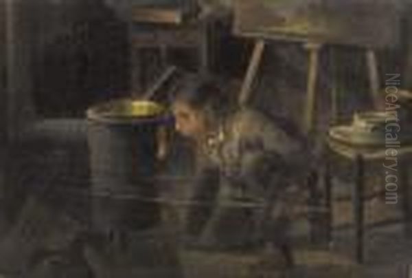 Knabe (albert Trachsel) Am Herd. Werkstattinneres