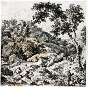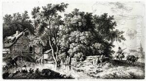 Cavalier Et Paysans Au Repos Dans Un Paysage Carriole Et Paysans Au Repos Dans Un Paysage (pair)