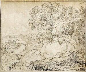 Cavalier Et Paysans Au Repos Dans Un Paysage