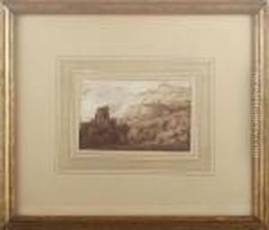 Berglandschaft Mit Schlosruine Mit Personenstaffage Aus Einer Waldlichtung Gesehen