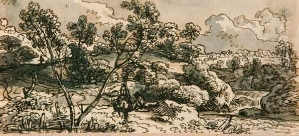 Hugelige Landschaft Mit Reiter.