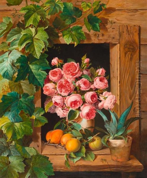 Still Life With Roses And Apricots.