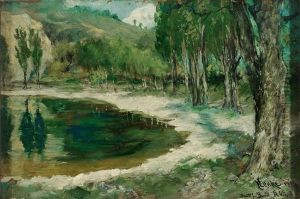 Fruhlingslandschaft Mit Teich