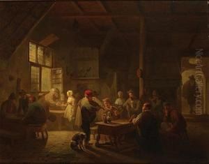 A Busy Tavern Oil Painting by Ferdinand de Braekeleer