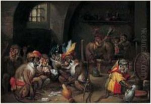 Singerie : Scene De Corps De Garde Oil Painting by Ferdinand van Kessel