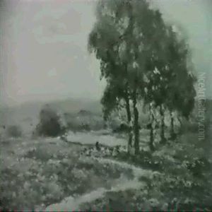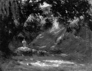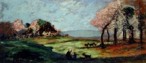Bergere Et Son Troupeau Sous Les Arbres En Fleurs