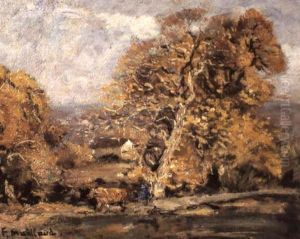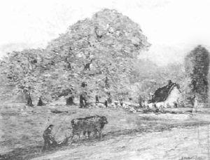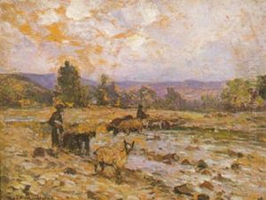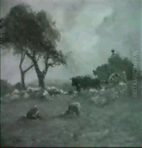 Paisaje De Bordeaux Con Labrador Y Bueyes
