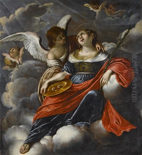 Bring the timeless beauty of Ferrau Fenzoni's Santa Lucia In Gloria into your home with a handmade oil painting reproduction. Carefully recreated on canvas by skilled artists using traditional techniques, this piece captures the delicate brushwork, subtle light, and vibrant color of the original masterpiece. With museum-level quality and rich texture, it brings elegance and artistic depth to any space. Enjoy free shipping and make this masterpiece a part of your personal collection.