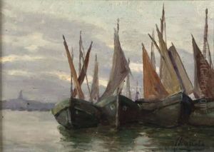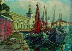 Barche In Laguna Oil Painting by Ferruccio Scattola