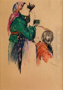 Peasant, Covering Her Mouth With A Shawl
