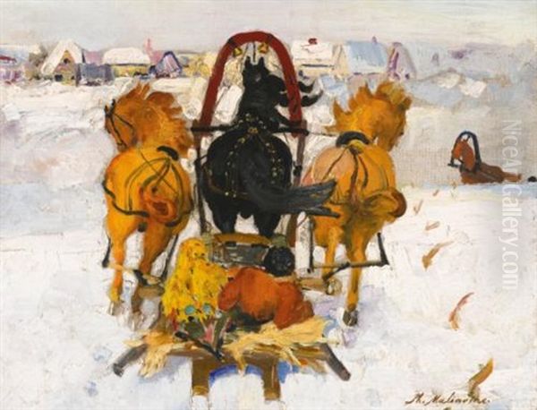 Bring the timeless beauty of Filip Malyavin's Troika In The Snow into your home with a handmade oil painting reproduction. Carefully recreated on canvas by skilled artists using traditional techniques, this piece captures the delicate brushwork, subtle light, and vibrant color of the original masterpiece. With museum-level quality and rich texture, it brings elegance and artistic depth to any space. Enjoy free shipping and make this masterpiece a part of your personal collection.