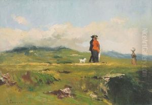 Filippo Carcano was an Italian painter born on September 21, 1840, in Milan, Italy. He is known for his landscapes and genre paintings, capturing the beauty of the Italian countryside and the daily lives of its people with a realist approach. Carcano received his initial training at the Brera Academy in Milan, where he studied under artists such as Giuseppe Bertini and was influenced by the Lombard school of painting.