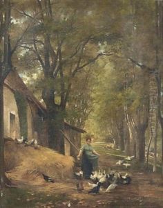 Cortile Con Figure E Galline